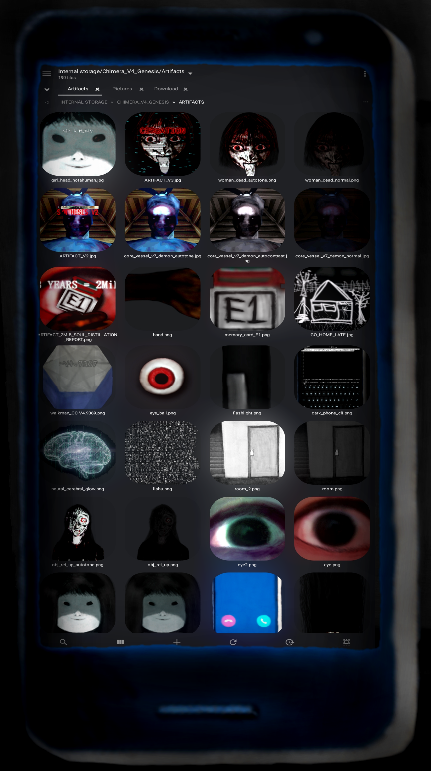 A growing collection of visual fragments found in res://Artifacts/, including: